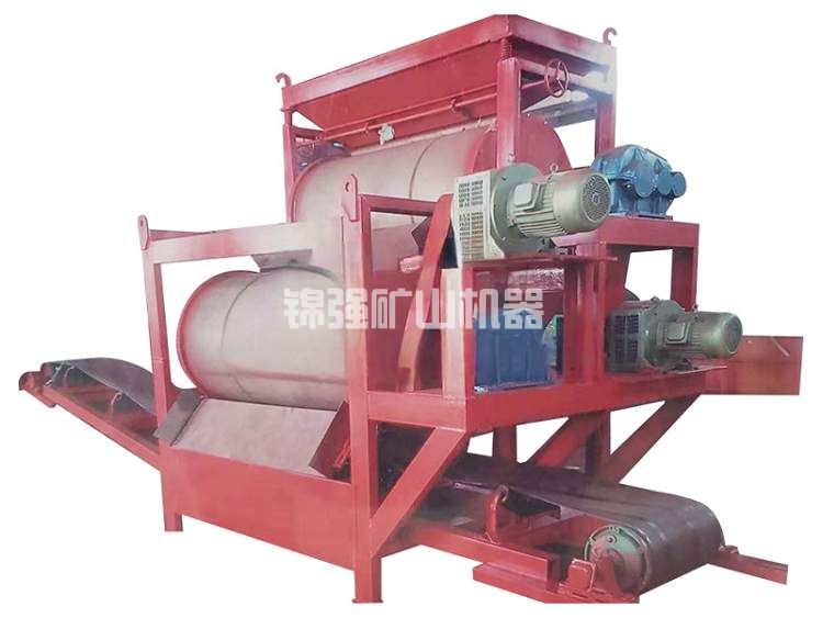 永磁滾筒磁選機,由箱體、兩個磁芯裝置、兩個排渣裝置及傳動裝置組成。